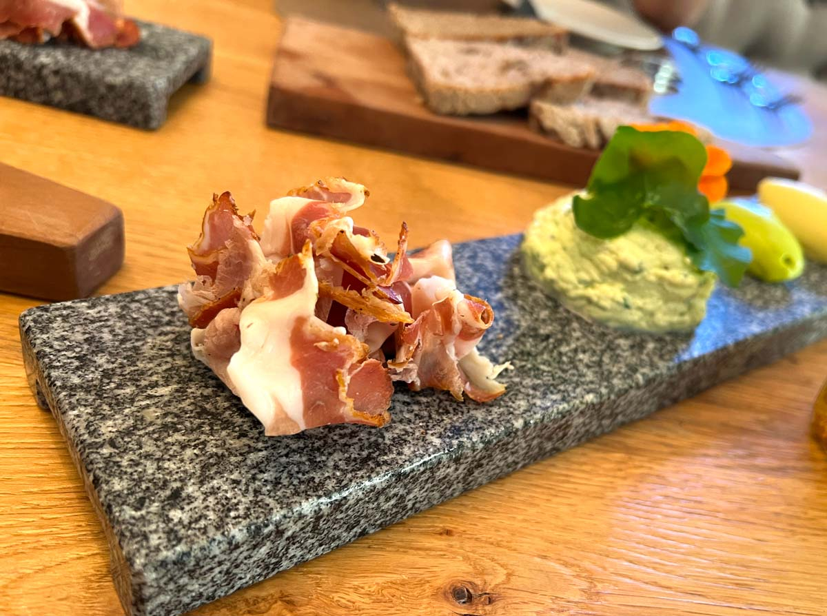 Mühltalhof Our first stop, the charming Mühltalhof in the historic market town of Neufelden, feels like stepping into a fairy tale. Located in the rolling hills of the Mühlviertel, in the middle of untouched nature this haven offers a seamless blend of modern rustic accommodations and exquisite cuisine. At its restaurant, OIS, every dish is a Gault & Millau-awarded masterpiece, a celebration of nature's bounty and the chef’s artistic vision.