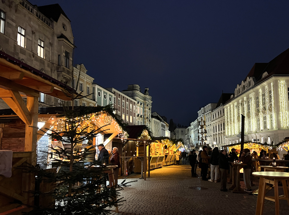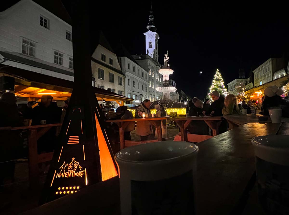 As soon as the scent of mulled wine, roasted chestnuts, and fresh Austrian doughnuts drifts through the streets, you know: the inner city of Steyr is officially in Christmas mode. Around the Leopoldi Fountain, a glowing Advent village pops up — full of lights, music, and yummy bites. Hearty classics, sweet treats, and creative hot drinks. You basically snack your way into happiness.