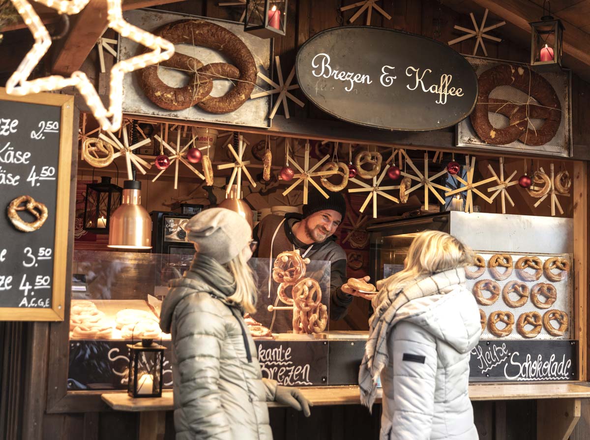 And there’s plenty to experience: blacksmiths showing off their craft, kids searching for the Christkind, and a Christkindl mailbox where you can drop your own wishes. When candles and firelight start flickering in the evening, it all turns completely magical. Tower musicians, traditional Schuhplattler dancers, and even mystical Perchten mix old traditions with pure Christmas vibes.