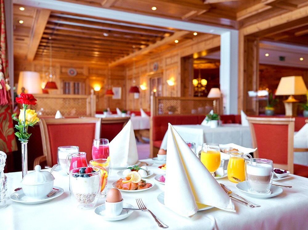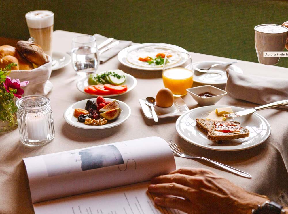 Zum Frühstück warten regionale Produkte, hausgemachte Marmeladen und frisches Obst am Buffet im kleinen Restaurant des Hauses. Am Nachmittag werden hier Kaffee, Tee und Mehlspeisen serviert und am Abend überzeugt das Küchenteam mit einem 5-gängigen Gourmetmenü. Dieses besteht aus österreichischen und internationalen Gerichten auf höchstem Niveau und rundet einen aktiven Tag in den Bergen oder einen entspannenden Tag in Lech perfekt ab. Begleitet wird das Menü optimalerweise durch die Aurora Hausweine aus dem Weinviertel.