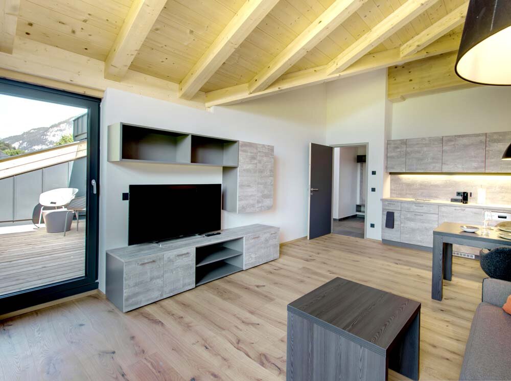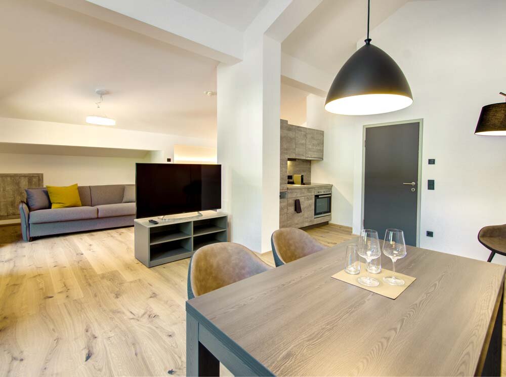 Die Gäste können aus drei verschiedenen Ferienwohnungen wählen, die ab fünf Nächten zu buchen sind. Auf 45 bis 85 Quadratmetern Wohlfühlwohnraum finden bis zu sechs Personen ausreichend Platz. Die Ausstattung umfasst einen Vorraum mit Garderobe, Wohnraum mit Essbereich und Kochnische mit Herd, Kühlschrank mit Gefrierfach, Geschirrspüler, Nespresso Kaffeemaschine, ein geräumiges Badezimmer mit Dusche und Föhn und Toilette. Der Schlafbereich mit Doppelbett, Doppelschlafcouch und teilweise mit extra Schlafzimmer mit Doppelbett sowie ein Balkon lassen kaum Wünsche offen.
