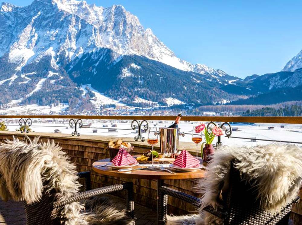 Einmalig ist der Ausblick vom traditionsreichen 4-Sterne-Superior-Hotel Genießerhotel Post Lermoos auf Deutschlands höchsten Gipfel des Wettersteingebirges – die sagenumwobene Zugspitze. In nur 10 Minuten bringt die Tiroler Zugspitzbahn WintersportlerInnen und AbenteurerInnen auf knapp 3.000 Metern. Insgesamt 9 Skigebiete mit über 214 Pistenkilometern bieten in der Tiroler Zugspitz Arena Platz genug für zahlreiche Skischwünge. Mit Funparks, Highspeed-Pisten und urigen Hütten kommt auch die Pisten- Gaudi nicht zu kurz. Dank der idealen Lage im Genießerhotel Post Lermoos befinden sich die Pisten in unmittelbarer Nähe – im Postschlössl sogar nur 3 Minuten vom modernen 6er-Hochmoos-Express entfernt. Ob Winterwanderung, Langlaufen, Rodeln oder Skifahren, die Post ist optimales Luxus-Basecamp für Schneefans.