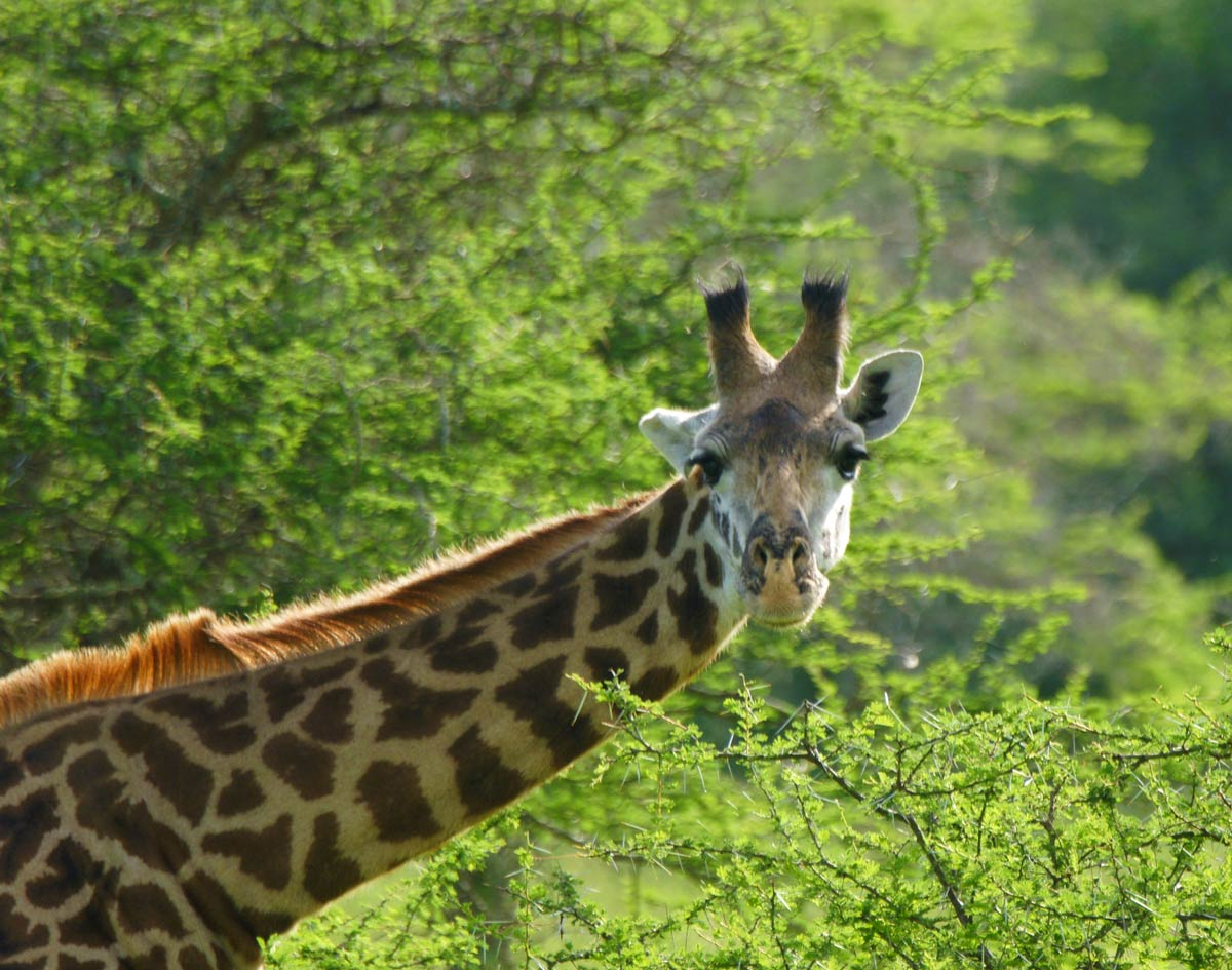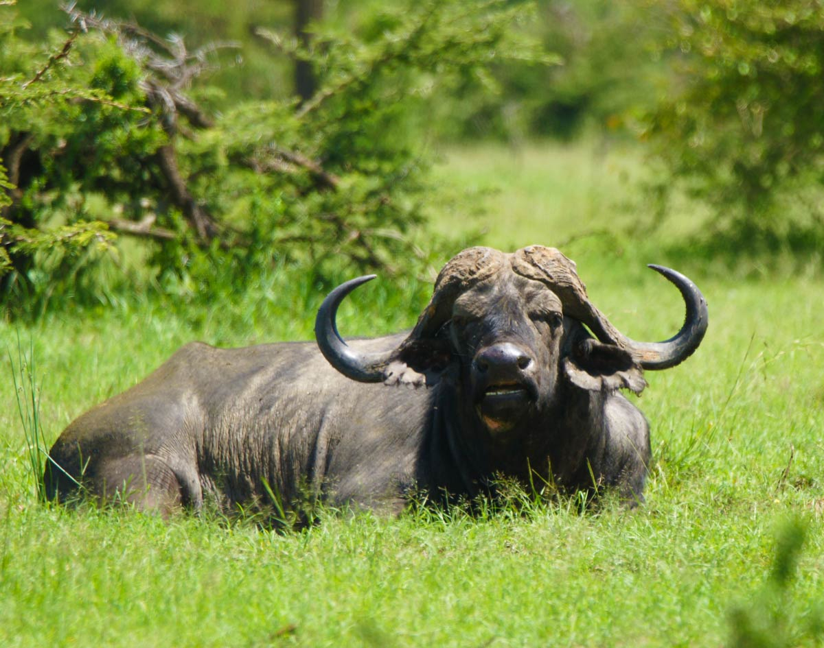Die Ol Donyo Logde liegt am Fuß der Chyulu-Berge nahe dem Tsavo West und dem Amboseli Nationalpark. Schon Ernest Hemingway schrieb über die bezaubernde Landschaft in seinem Buch „Die grünen Hügel Afrikas“. Ende Dezember, nach der Kleinen Regenzeit, schimmern die Berge im Morgenlicht und die weite Ebene glänzt in frischem Grün, durchsetzt mit kleinen weißen Blüten. Eine kleine zweimotorige Maschine der Safari Link, mit einer Pilotin, hat uns in einer knappen Stunde von Nairobi aus hierher gebracht, wo bereits ein offener Toyota-Landcruiser wartet. Auf dem Weg zur Lodge finden wir drei Geparden Brüder, die eine Thompson Gazelle gerissen haben. Die Savanne ist gesprenkelt von Giraffen, zwei Bullen kämpfen zwischen den Schirmakazien, beobachtet von einer Gruppe Reiter – denn die Lodge bietet neben Buschwanderungen und Pirschfahrten auch einen eigenen Reitstall inklusive Ausritten an. In Ol Donyo wartet ein Lunch mit ausgewählten Köstlichkeiten. Wir erfahren, dass bei Great Plains alle Getränke, auch alle alkoholischen, immer inbegriffen sind. In jedem Camp kann man im hauseigenen Weinkeller Weine aus aller Welt, meist aus Südafrika, verkosten. Jede der fünf Wohneinheiten besteht aus einem geräumigen Zimmer mit Nebenräumen, vom Bett aus kann man, wenn man das Moskitonetz beiseite schiebt, durch das Panoramafenster den Kilimandscharo sehen.