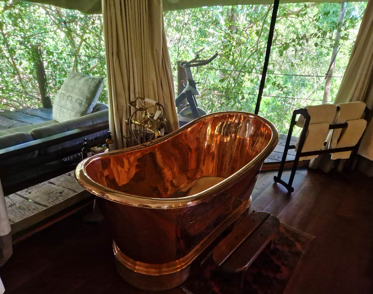 Derek Joubert, Chairman von Great Plains und berühmter Tierfilmer, hat jedes Zimmer der Lodge und die geräumigen Zelte aller seiner Camps stilvoll und individuell mit Lesersesseln, Schreibtischen, Safarikisten und riesigen Tierfotos seiner Frau Beverly eingerichtet. Zwei Feldstecher, oft von Swarovski und eine Canon EOS 5D mit zwei starken Zoom-Objektiven gehören ebenso wie Ladegeräte für alle Stecker, Insektenspray und Lesebrillen zur Ausstattung. Überdies liegen die neuesten Fotobücher von Beverly Joubert auf. Das Badezimmer bietet eine freistehende Badewanne, Innen- und Außendusche sowie eine Terrasse mit Liegen, über die man einen privaten, halbmondförmigen Swimmingpool erreicht, der mehr als nur zwei Tempi erlaubt. Vom Daybed auf der Dachterrasse kann man des Nachts den unwahrscheinlichen Sternenhimmel bestaunen. Die morgendliche Pirsch führt uns zu zwei großen „Tuskern“, riesigen Elefantenbullen, die gerade vom nahen Amboseli-Nationalpark überwechseln. Zurück in der Lodge, genießen wir ein viergängiges Menü in der Bibliothek neben dem Pool, um den sich bunte Siedleragamen tummeln , die ebenso wie wir den Blick auf die weite Ebene und das Wasserloch mit Live-Kamera und dem Foto-Hide genießen. Beim Night-Gamedrive setzt das Rotlicht des Spots leider unsere Kameras außer Gefecht. So konzentrieren wir uns auf Geparde, Springhasen und die Sternbilder des Orion, der Capella und die phantastische Milchstraße. Der Early-Morning Gamedrive führt durch die lichte Baumsavanne zu einer Schirmakazie, wo uns ein Buschfrühstück erwartet: Ein gedeckter Tische mit Teppich und zwei Köche bieten alles, was dazugehört. Die Masai-Kellnerin Koro öffnet eine Flasche Taittinger Champagner, die wir mit Blick auf den Kilimandscharo leeren. Unglaublicher Luxus in Afrika.