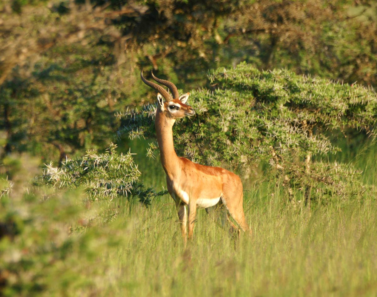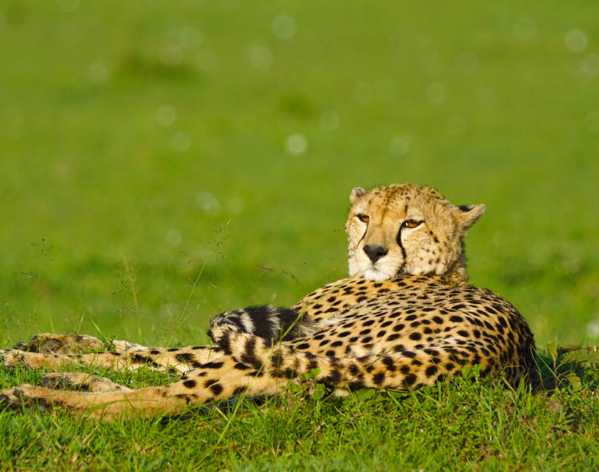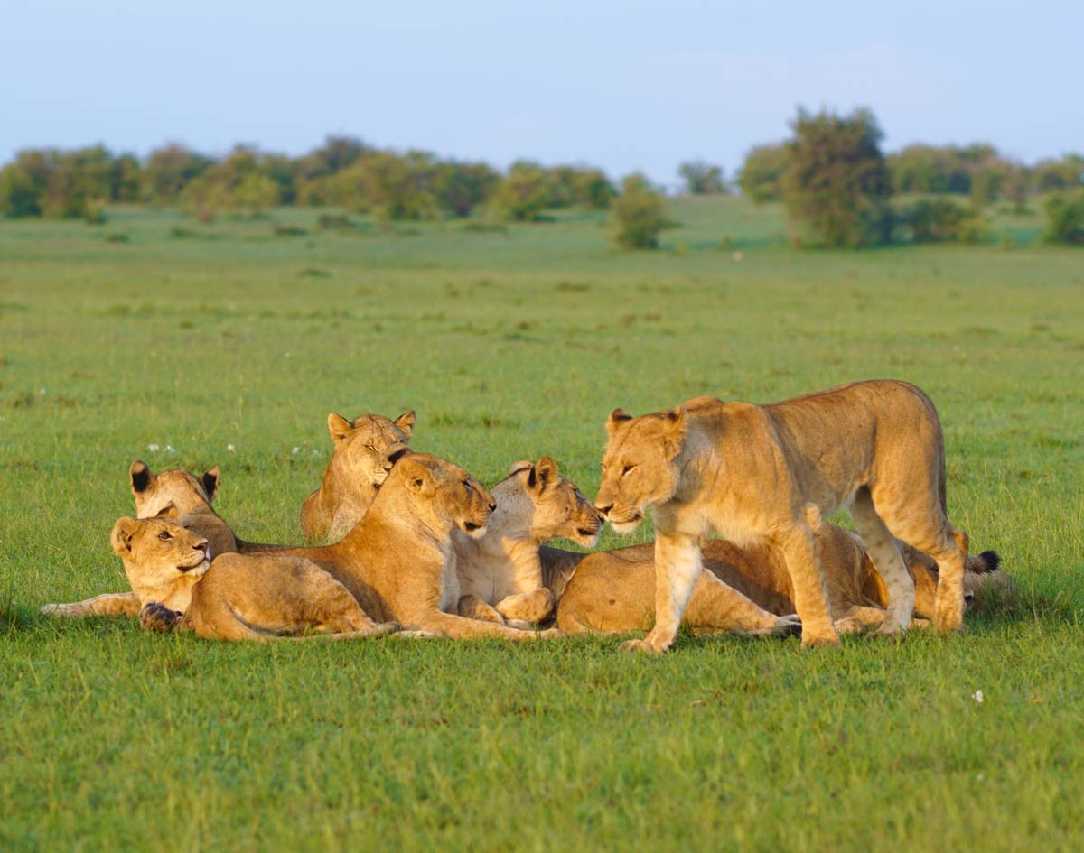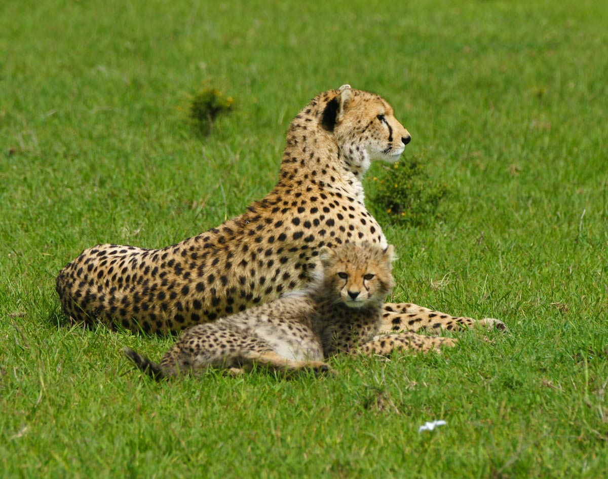 Die große Gnu-Wanderung ist auch hier schon vorbei, aber unzählige Topis mit ihren neugeborenen Kälbern, mächtige Elen, Impalas, Grant Gazellen, Kongonis und sogar die eleganten Giraffengazellen bevölkern die Savanne und erfreuen sich an dem frischen Grün. Geparden spielen mit ihren Jungen und Tüpfelhyänen genießen Schlammbäder. Wir fahren in nördlicher Richtung in die Olare Motorogi Conservancy und werden im Mara Expedition Camp schon erwartet, das nur über sechs Zelte, aber 36 Angestellte verfügt. Wir genießen zwei herrliche Tage mit dem Luxus, den Great Plains Conservancy auch hier bietet. Am Abend erleben wir ein Show-Cooking der Masai-Köche des Camps, das von ihren alten, oft traurig klingenden Gesängen begleitet wird. Sogar einen Pool gibt es, der auf einem alten GMC Lastwagen montiert ist. Und wie immer funktioniert WLAN mit voller Absicht nur im eigenen Zelt – die Gäste sollen genießen und Gespräche führen. Einen Besuch des Löwenrudels Marsh Pride, bekannt aus unzähligen Fernseh-Dokumentationen, müssen wir wegen eines hochwasserführenden Flusses leider absagen, aber Nancy fährt uns zu einem sich seit Tagen paarenden Löwenpärchen.