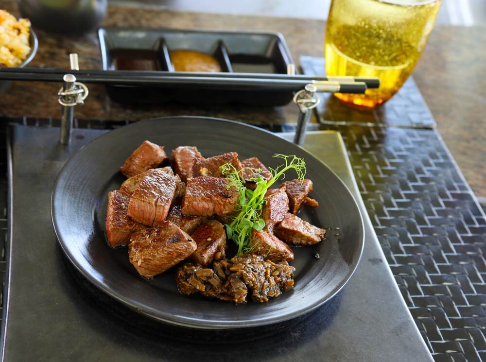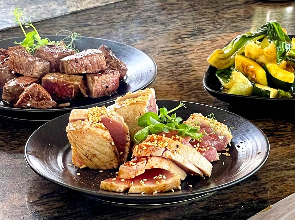 A drink on the first floor, the Lighthouse Lounge, and then a classic menu with lobster bisque or white onion velouté to start, followed by a yellowfin tuna filet Rossini with foie gras or a crispy duck breast with baby carrots and perhaps a fruit flambeé to finish. Like the lobster bisque, all is prepared at the table.