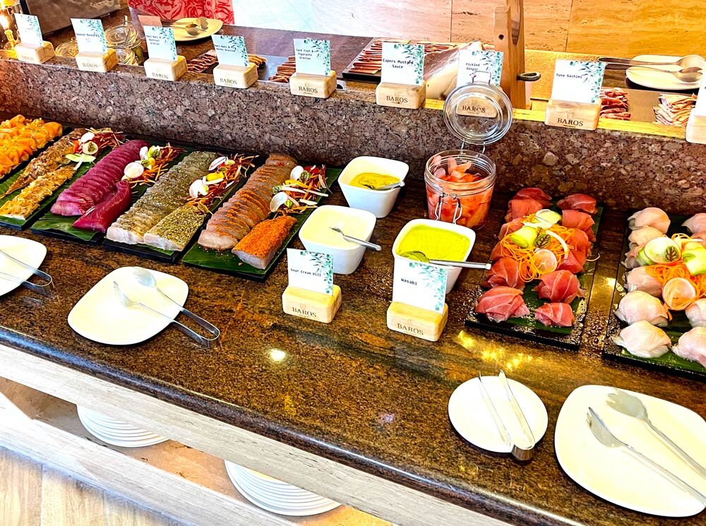 In the Lime Restaurant, you start the day with a rich breakfast buffet consisting of international specialties, fresh fruit, sausage and ham, freshly baked bread in all imaginable variations, egg dishes, cheese, pastries, croissants, and more. For lunch, Lime offers light meals, sandwiches, burgers, and fish, and in the evenings, guests are enchanted with Asian-influenced cuisine and of course sunset views.