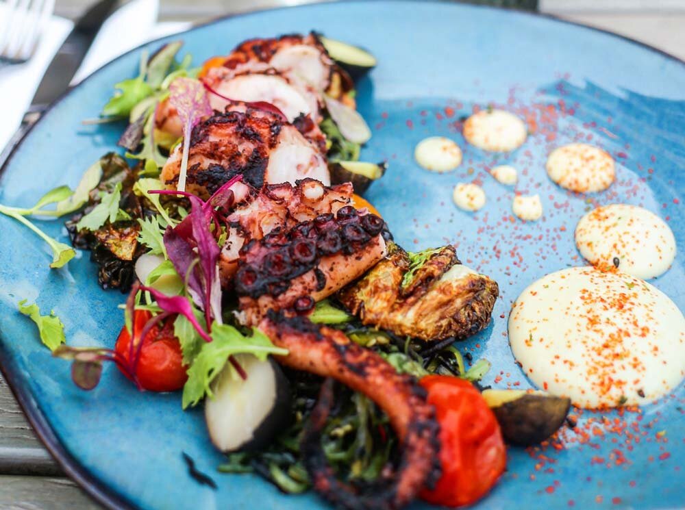 Its decor, with white oak, blue accents, and abundant greenery on the patio, creates a beachy and garden-inspired vibe. With indoor and outdoor dining available for breakfast, lunch, and dinner, you can savor the creations of Michelin-starred chef José Andrés. We had a delightful time at the outdoor patio, enjoying some truly delicious appetizers and drinks.