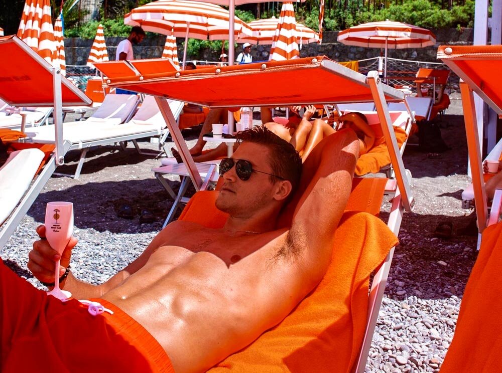 We booked spot 201. Your booking includes your private spot along the cliffs and your chairs and towels. This is the pricier beach club but it comes with the advantage of being more exclusive. It is a bit more on the boujee end but well worth it! You will enjoy a private day in your luxury day bed section built into the Positano beachside cliffs. INSIDER TIP: order a limoncello spritz, it’s MASSIVE and so yummy!