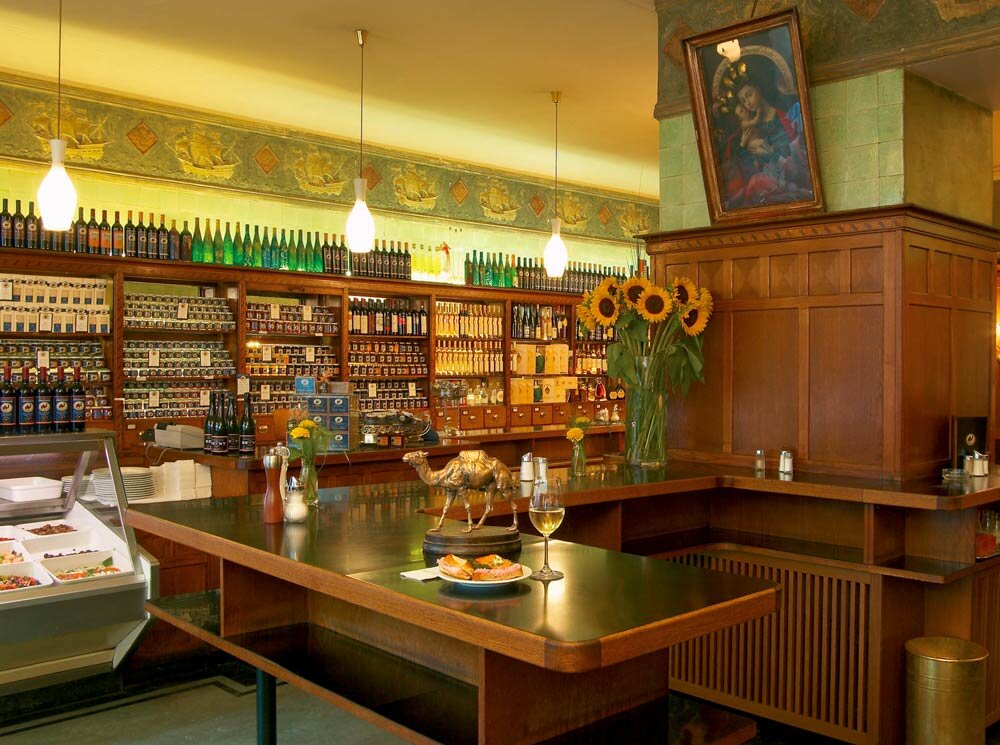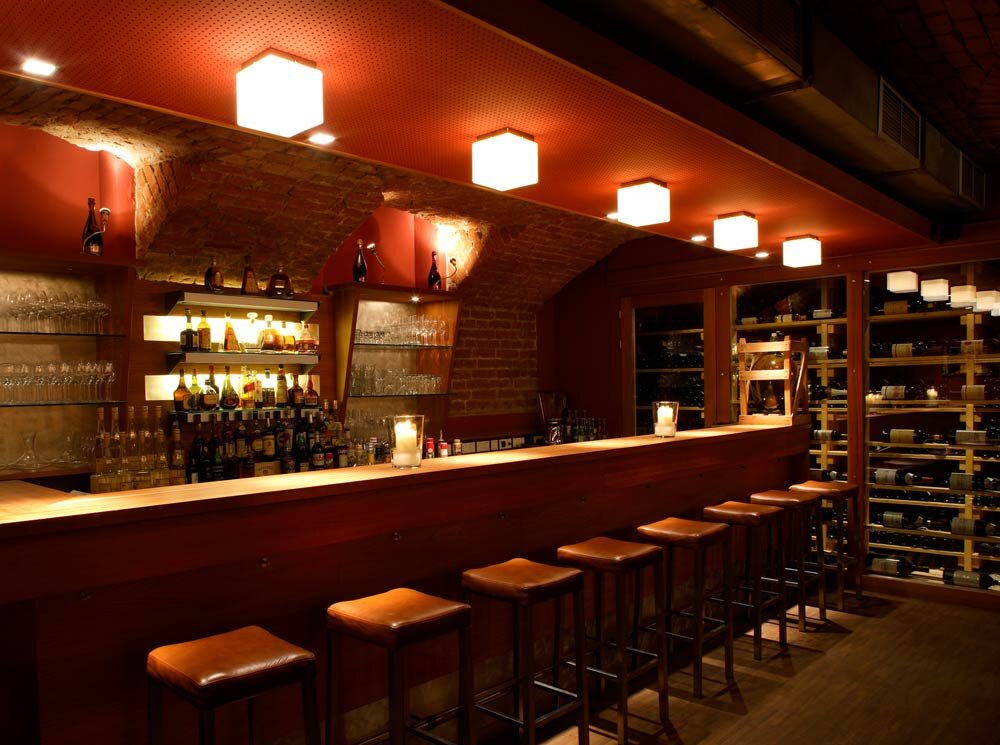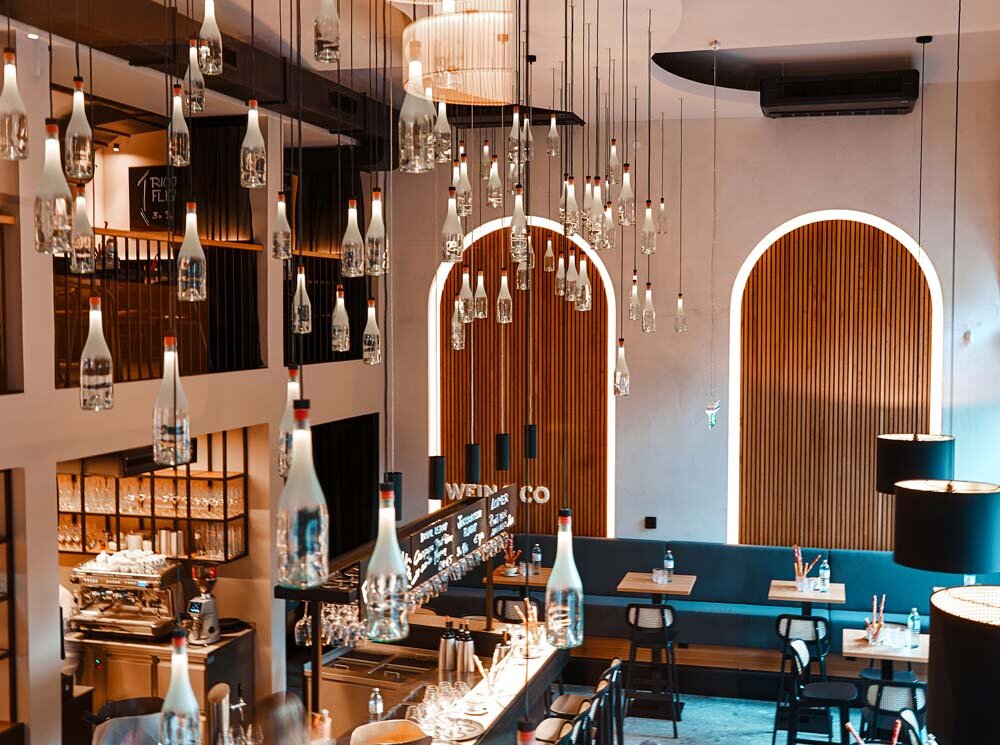 The wine bar area is divided into three parts and extends over two floors. The bar area offers the right ambiance for a relaxed chat and unique wine bar food. The shop is on the ground floor and features a large tasting zone.