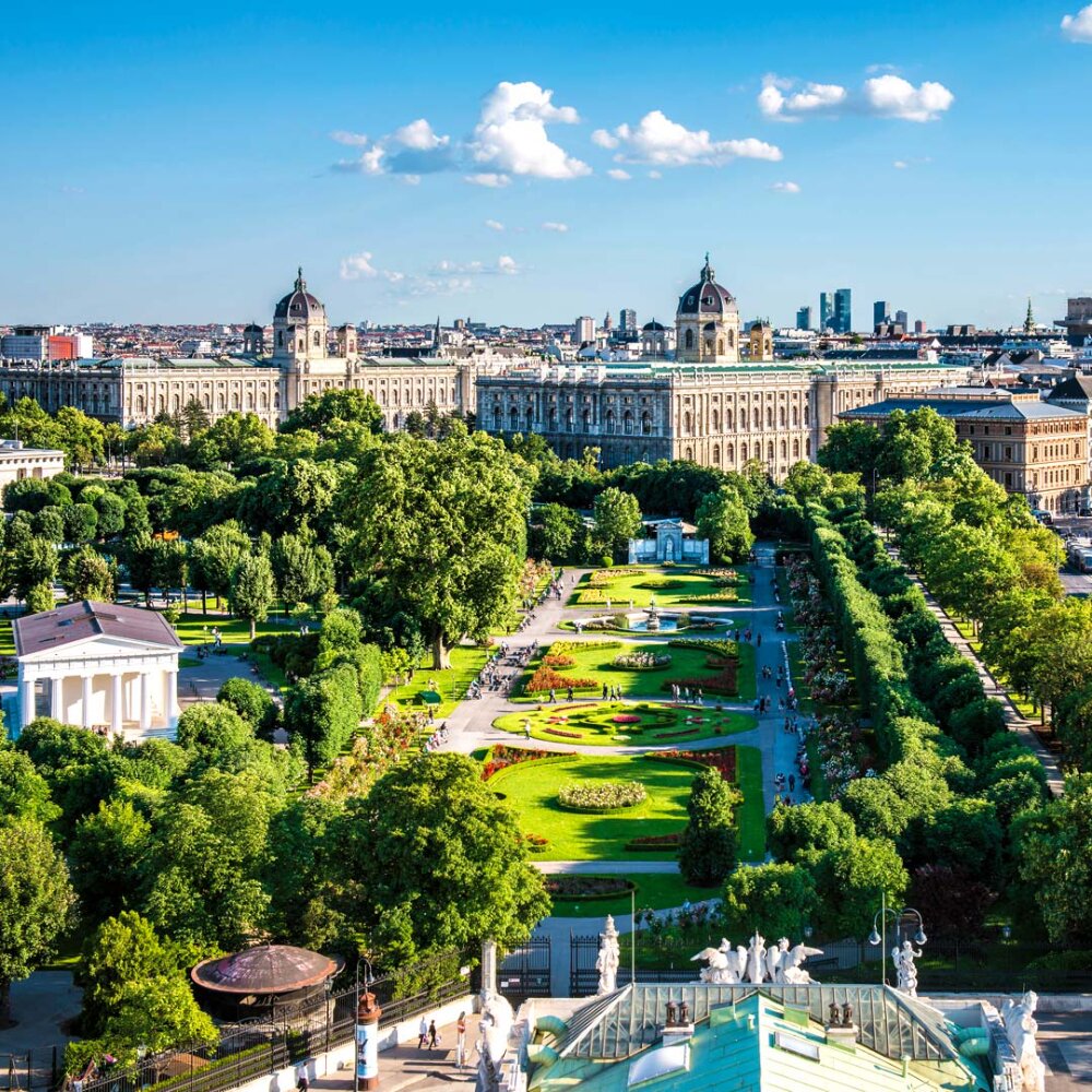 Car traffic on the ring road is guided in up to four lanes in a clockwise direction. The ring can also be circled by bicycle. However, the Ringstrasse is also a place of relaxation. When it was built, the boulevard was deliberately designed with landscape principles in mind. Between the street and the buildings, two to three rows of trees were planted on either side, with a walking and riding avenue in between. Today there are around 2,400 trees along the boulevard that provide pleasant shade in summer.