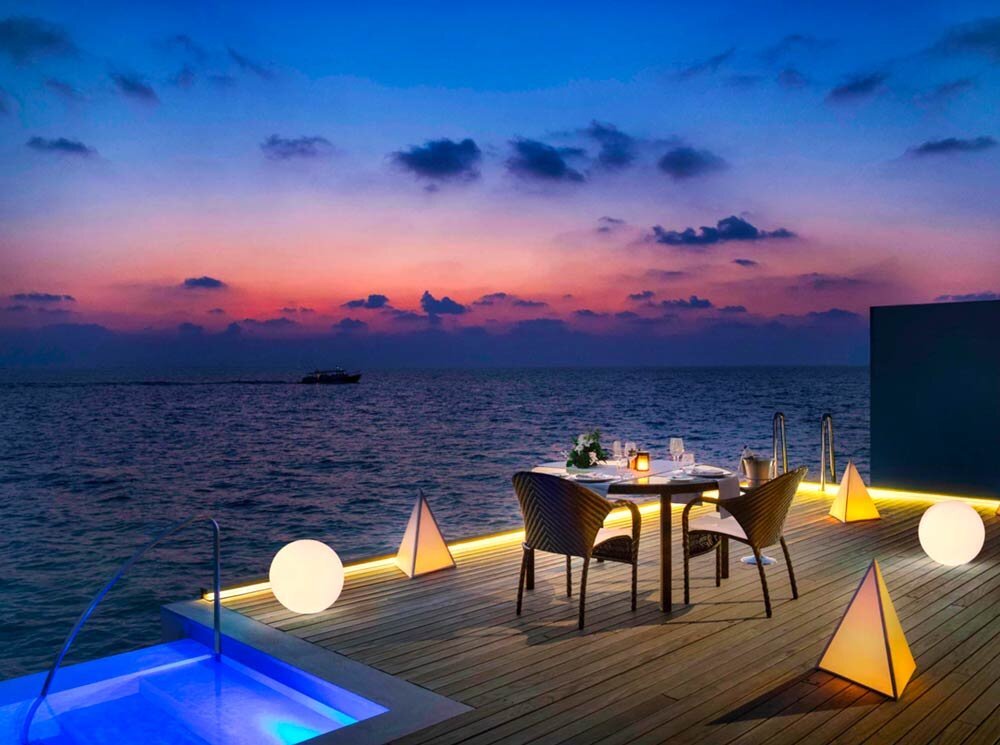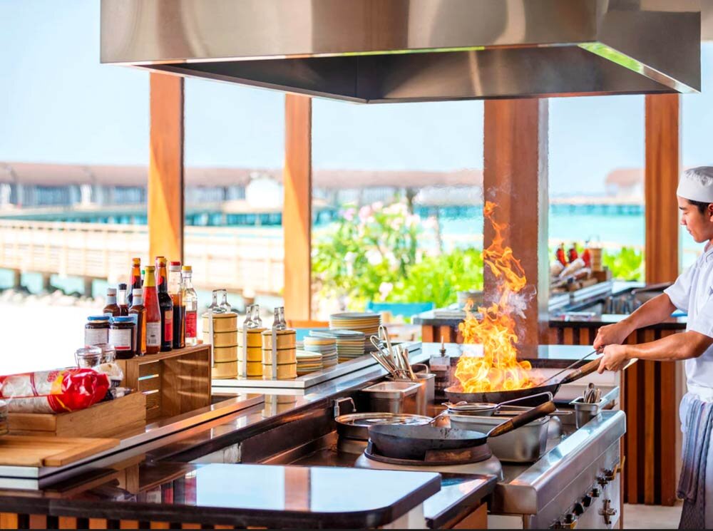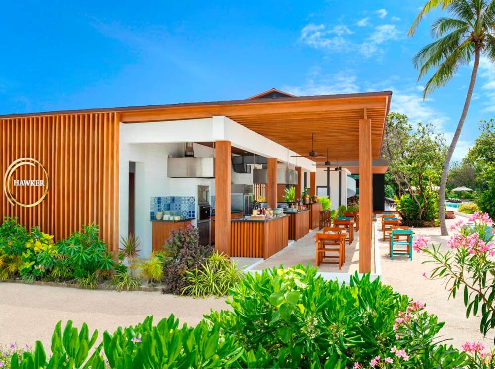 The resort has three restaurants in heavenly settings. International cuisine and all-day dining await you at the Island Kitchen Restaurant overlooking the resort pool. The Japanese restaurant The Pearl boasts amazing freshly caught seafood. Hawker offers authentic Asian street food in a relaxed market-place setting. In the evening the Sunset Bar invites to relaxed outdoor dining and cocktails with an unforgettable sunset over the Indian Ocean.
